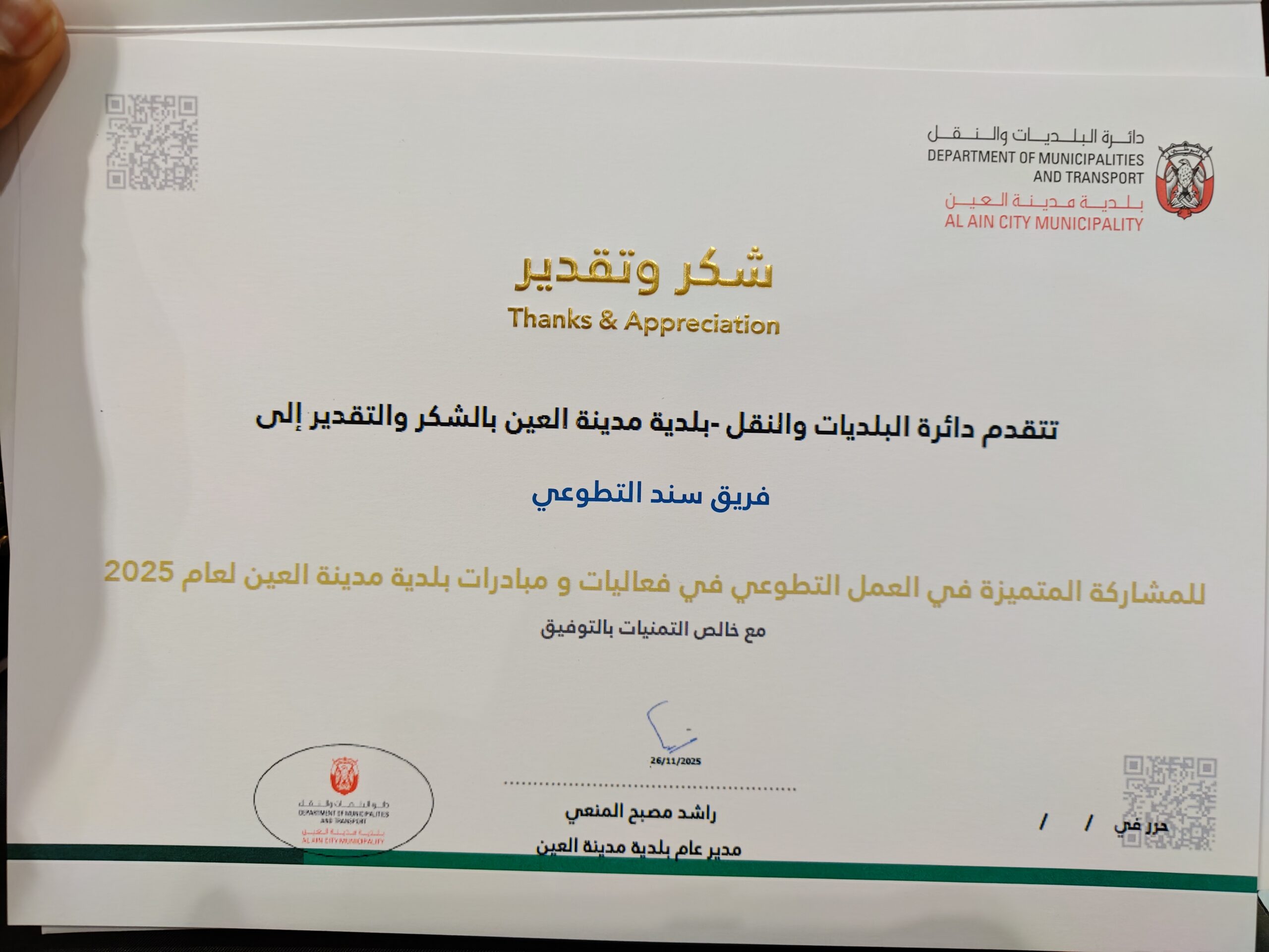 وجاء الحفل تأكيدًا على اهتمام بلدية العين بدعم ثقافة التطوع التي تشكّل جزءًا أصيلًا من القيم الإماراتية، ومساندة المبادرات المجتمعية التي تسهم في تعزيز جودة الحياة وازدهار المجتمع.